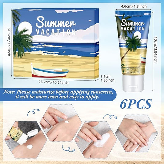 6 Pcs Halloween Gifts Travel Size Sunscreen Spf 30 Mini Sunscreen Lotion 1oz Travel Water Resistant Sunscreen Lotion for Halloween Party Favors(Summer Vacation)