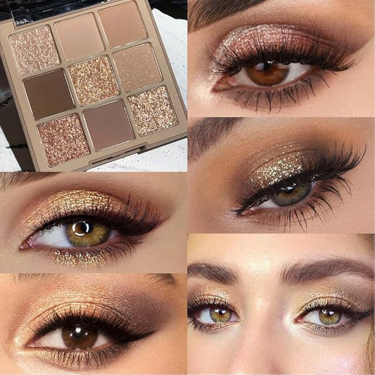 9 Colors Matte Nude Pink Shimmer Gold Dark Brown Colorful Eyeshadow Palette Matte Shimmer Korean Natural Eye Shadow palettes Highly Pigmented Naturing-Looking Long Lasting (05#)