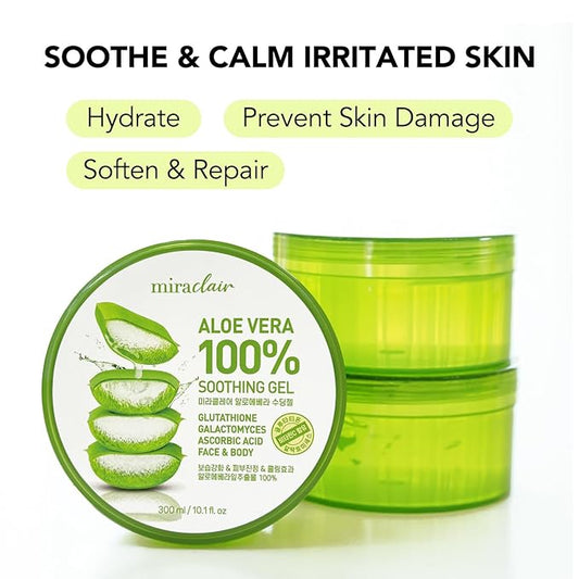 Aloe Vera Gel for Face, Skin, Hair & Sunburn Relief, 100% Pure Aloe Gel for All Skin Types. Made in Korea. 300ml (10.1fl.oz)