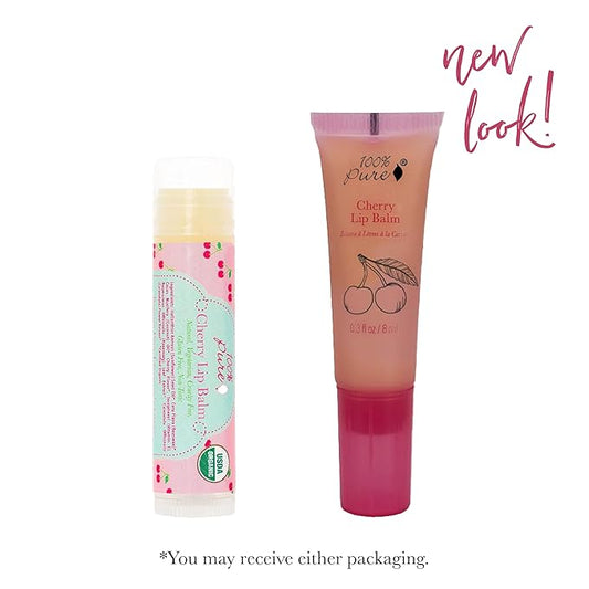 100% PURE Organic Cherry Lip Balm, Moisturizing, Soothing for Dry, Chapped Lips, Made w/Coconut Oil, Vitamin E, Natural Lip Balm - 0.4 oz
