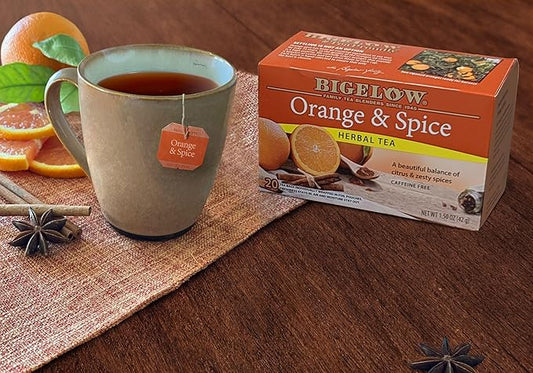 Bigelow Tea Orange & Spice Herbal Tea, Caffeine Free Tea with Orange and Herbs, 20 Count Box (Pack of 6), 120 Total Tea Bags