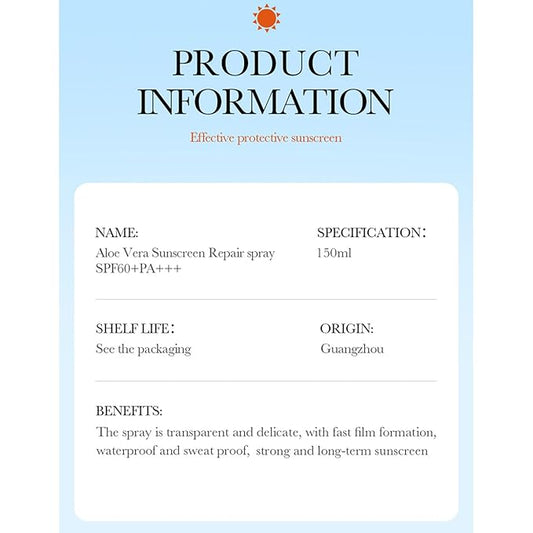 BIOAQUA Aloe Vera Sunscreen Spray SPF60+ PA+++ UVA/UVB Repair Refreshing Moisturizing Waterproof Sweat Resistant 150ml / 5.07fl.oz