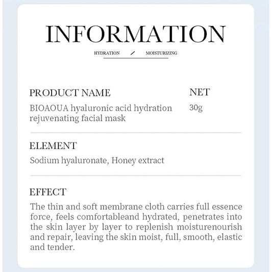 BIOAQUA Hyaluronic Acid Moisturizing Replenishment Facial Mask HA Reduces Acne Deep Cleanse 30g (5 Pack)