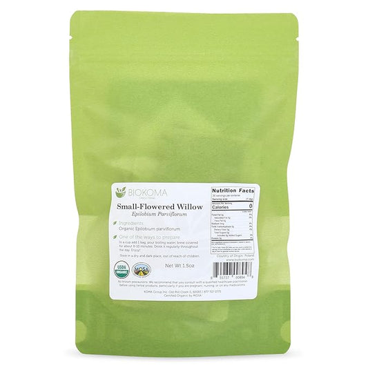 Biokoma Pure and Organic Small-Flowered Willow Epilobium Parviflorum Dried Herb 30 Tea Bags in Resealable Moisture Proof Pouch, USDA Certified Organic Herbal Tea No Additives No Preservatives, Kosher