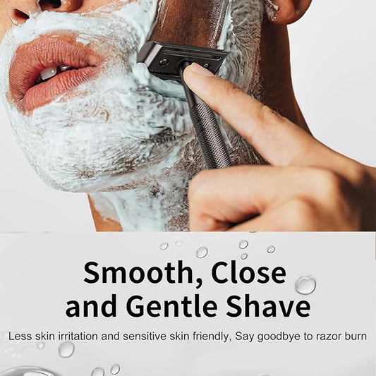 Black Safety Razor, Single Blade Razors for Men, with 10 Double Edge Blades, Long and Heavy Duty Stainless Steel Handle, Reusable Metal Eco-Friendly Razor, Plastic Free, Smooth Shave