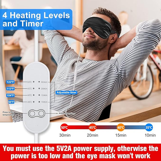 2 Pieces Silk Heated Eye Mask for Dry Eyes USB Steam Warm Compress for Puffy Eyes Adjustable Temp Sleep Eye Mask for Dry Eye, Chalazion, Blepharitis, Stye (Black, Pink)