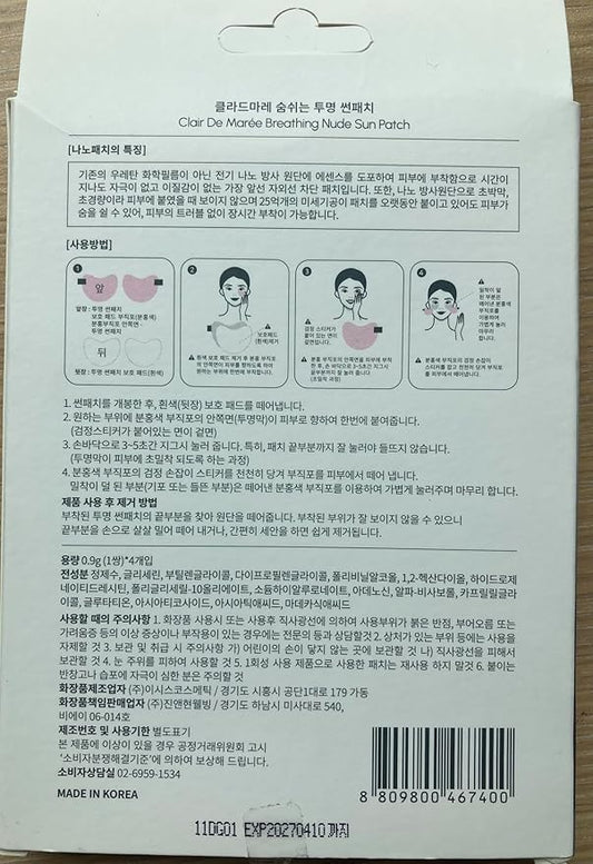 Clair De Maree, Breathing Nude Sun Patch, UV Protection, Excellent Breathability, Nano Technology, Maintaining Skin Hydration