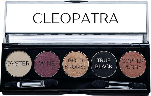 Cleopatra Shimmer White, Purple Burgundy, Gold Bronze, Black and Copper Penny Vegan Eyeshadow Palette; Talc, Paraben & Cruelty Free