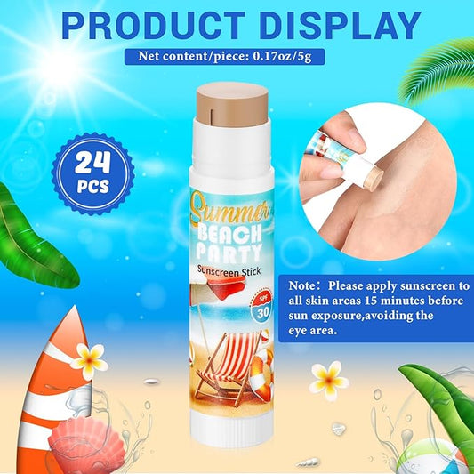 24 Pcs Mini Sunscreen Stick Bulk for Summer Wedding SPF 30 Face Sunscreen Stick Water Resistant Light Skin Tone Sun Block Stick for Thank You Gifts Adults Travel Wedding Party Supplies(Beach Style)
