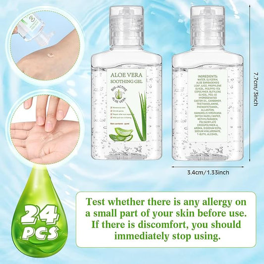 24 Pcs Mini Aloe Vera Gel Travel Size Bulk for Summer Vacation Party 1oz After Sun Aloe Vera Gel Sunburn Relief Hydrating Face Body Moisturizer Cream for Gifts Summer Party Supplies