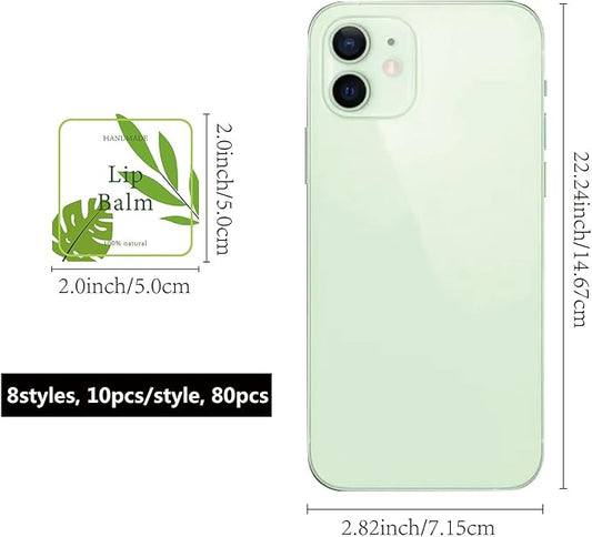 CRASPIRE Lip Balm Labels 80pcs Homemade Green)