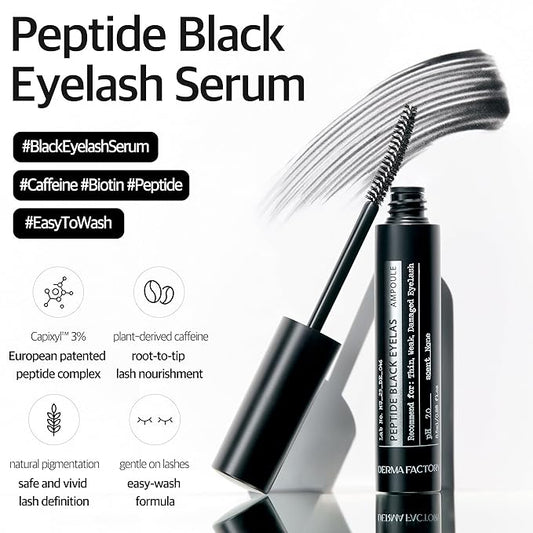 Derma Factory Peptide Eyelash Ampoule – Black Tinting Lash Growth Serum for Thin, Weak & Damaged Lashes – Volumizing Peptide Lash Enhancer, Oil-Free, Irritation-Free Formula, Black3, 0.16 fl oz