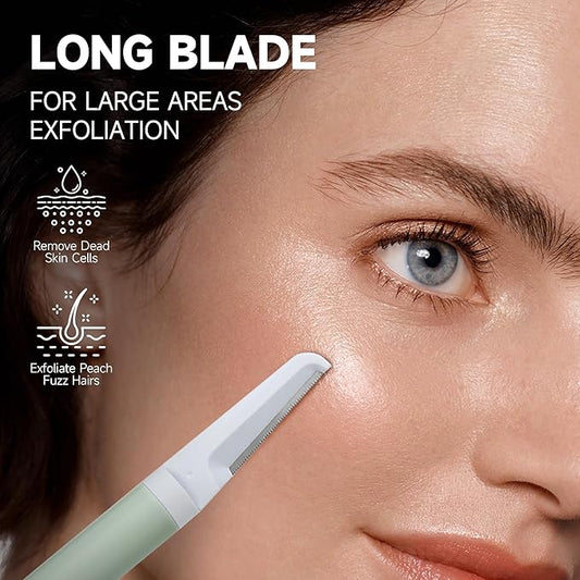 Dermaplane Razor - Facial Hair Removal Tool with 8 Refill Blades, Exfoliating Dermaplaning Tool for Face, Eyebrow Razor with Safety Cover, Face Shaver for Women (Green)