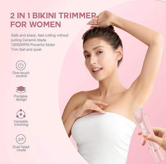 Dermave Bikini Shaver, Bikini Trimmer for Women, Glow Aura Electric Razor 2-in-1 Women's Body Shaver Dual Head Women's Trimmer for Leg Arm Body Grooming Tool (Pink)