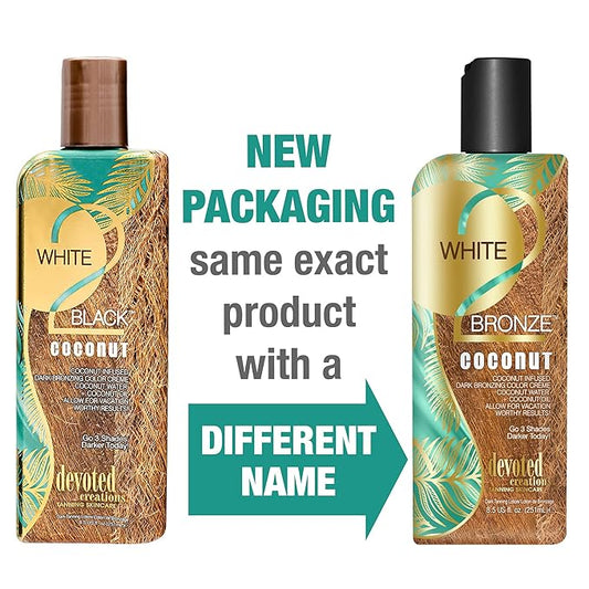 Devoted Creations White 2 Bronze Coconut - Color Enhancing Dark Bronzing Tanning Lotion with Coconut Water & Coconut Oil 8.5 oz.