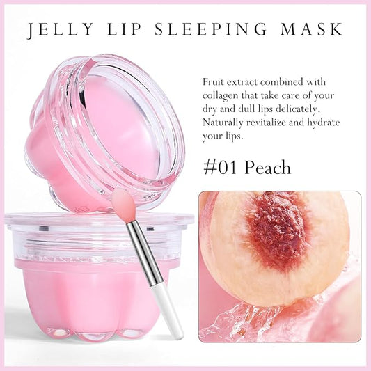2Pc Jelly Lip Mask Overnight,Fruity Peach Collagen-Peach