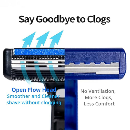 Dorco Pace 2 Plus Disposable Razor 2 blades Pivoting Head Open-Flow No Clogging Easy Rinsing Lubricating Strip Long Non-Slip Rubber Handle (30ct No Rubber Handle)