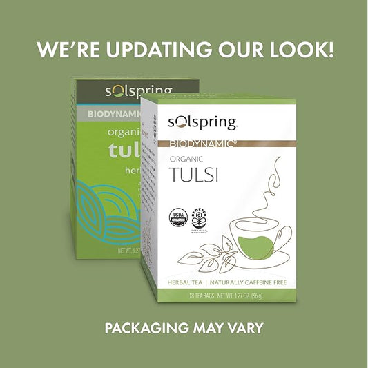 Dr. Mercola Solspring Organic Tulsi Herbal Tea, 18 Tea Bags (Pack of 3) Naturally Caffeine Free, USDA Organic, Organic Demeter Certified
