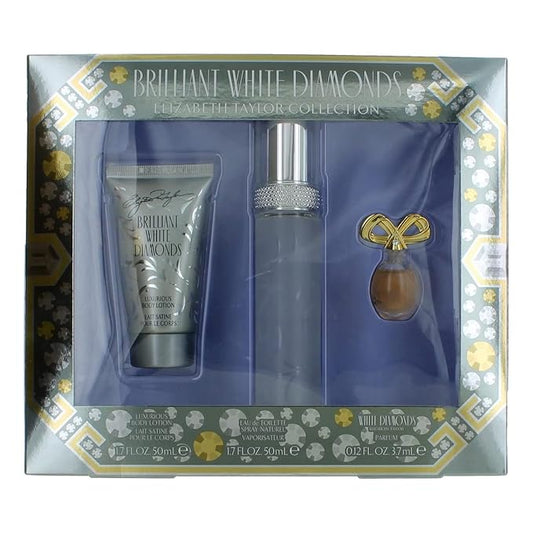 Elizabeth Taylor Brilliant White Diamonds Ladies Gift Set With Spray, Body Lotion & Perfume