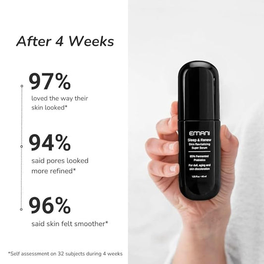 Emani Sleep and Renew Face Serum With Anti Aging and Wrinkle Reducing Properties, Hydrating Serum Contains Fermented Probiotics for Dull and Aging Skin for Women, 1.18 fl oz