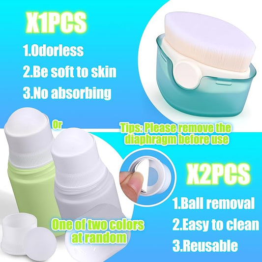 3 PCS Sunscreen Applicator for Kids, Soft Sunblock Brush + 2 PCS Empty Roller Ball Container for Sunscreen Lotion, Sunscreen Applicators for Family Travel