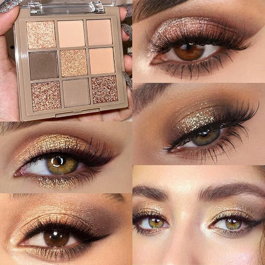 Eye Shadow Palette Makeup,9 Colors Gold Matte Shimmer Vegan Eyeshadow,Highly Pigmented Long Lasting Waterproof Naturing-Looking make up pallets for women,eyeshadow palette for brown blue eyes