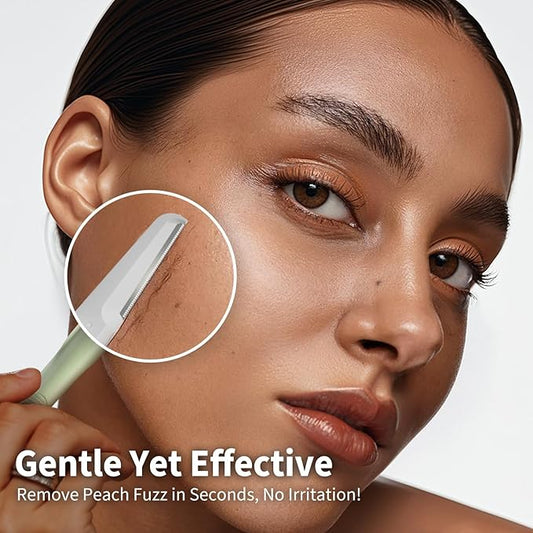 Face Razors for Women, Dermaplane Razor for Women Face, Eyebrow Razor, Facial Razors, Dermaplaning Tool, Reusable Metal Handle with 4 Microblades for Sensitive Skin, Peach Fuzz Remover, Green