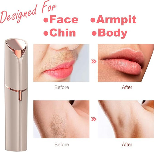 Facial Hair Removal for Women- as Seen on TV Painless Face Shaver -Painless Womens Facial Hair Remover with 2 Replacement Heads, Lipstick-Sized, USB Rechargeable(Rose Gold)