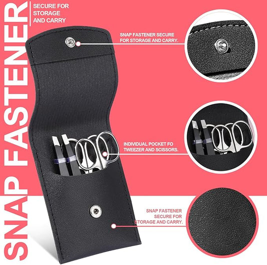 FANDAMEI Eyebrow Kit with Leather Case - Eyebrow Scissors, Tweezers, Razor, Brush for Women & Men - Facial Hair & Ingrown Hair Removal