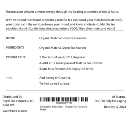 FIRE TEAS Matcha Green Tea Powder (90 Grams) - Superior Grade, Delicious, Healthy - Rich in Anti Oxidants -