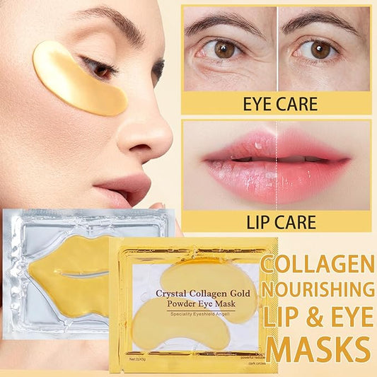 30 Pairs Lip Mask & Eye Mask, 24K Gold Gel Collagen Eye Pads for Puffy Eyes, Effectively Moisturizing the Lip & Eye Skin, Under Eye Patches for Dark Circles, Eye Bags, Wrinkles and Fine Lines