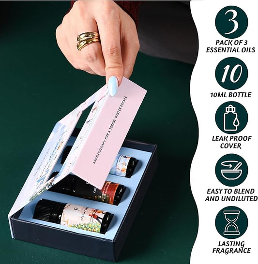 Folkulture Christmas Fragrance Oil, Pack of 3 Christmas Essential Oils Set Scented for Diffusers for Home, Christmas Gifts or Mom's Gift - White Woods Cashmere Lavender - (Winter Wonderland)
