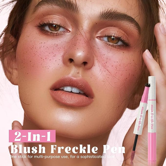 Freckle Blush Pen, 2in1 Light Brown Faux Freckle Stamp Pen Soft Pink Liquid Blush for Summer Sunkissed Makeup, Natural Lifelike Waterproof Long Lasting Quick Dry Fake Freck Tint Marker Pen01#