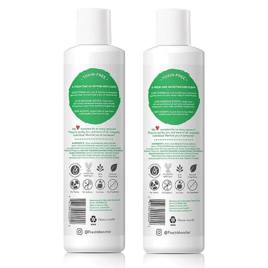 Fresh Monster 2-in-1 Kids Shampoo & Conditioner, Toxin-Free, Hypoallergenic, Tear-free Shampoo & Conditioner for Kids, Watermelon (2 Pack, 8.5oz/each)