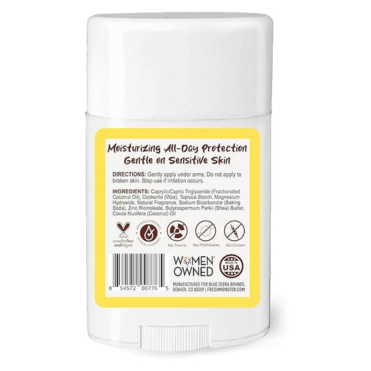 FRESH MONSTER Deodorant for Kids & Teens, Coconut-Lemon Scent, No Aluminum, No Parabens, Vegan, 24-Hour Protection, Coconut Lemon, 1.76 oz