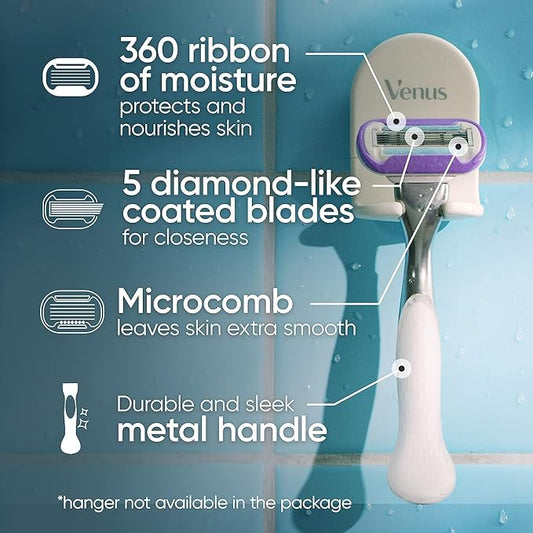 Gillette Venus Extra Smooth Razor for Women, Includes 1 Reusable Razor Handle + 4 Refills, 5-Bladed, Ergonomic No-Slip Gel Handle and Shower Holder
