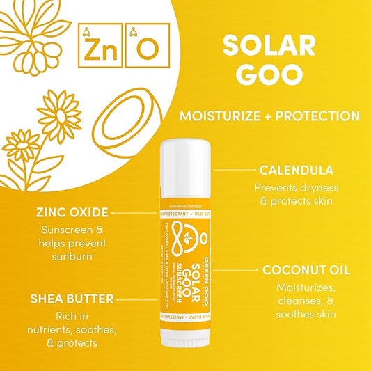 Green Goo Natural Skin Care Salve, Solar Goo, 30 SPF Sunscreen, 0.6-Ounce Stick, 3-Pack