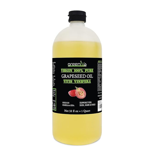 GreenIVe Grapeseed Oil Organically Grown 100% Pure Cold Pressed Light Flavor High Tempurature Cooking 32oz