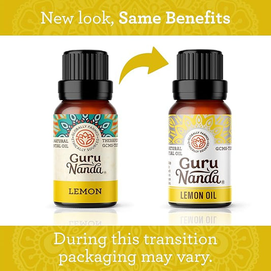 GuruNanda Lemon Essential Oil - 100% Pure, Natural, Undiluted Aromatherapy Oil for Diffusers, Massage & DIY Recipes - Fresh Citrus Scent (2x0.5 Fl Oz)