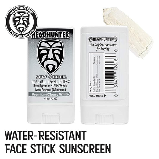 Headhunter Sunscreen Face Stick SPF 45, Waterproof Surf Sunblock for Waterman, Water-Resistant Facial Sunscreen for Ultra-Sport Protection and Solar Defense (80 min), Clear White (1 pack)