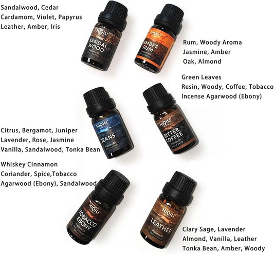 HIQILI Fragrance Essential Oil for Men 6x10ml Candle Scents for Candle Making Scented Oils Set for Aromatherapy Diffuser DIY Christmas