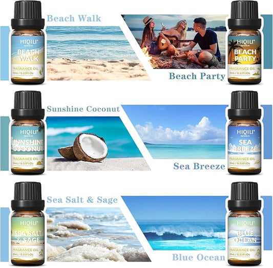 HIQILI Fragrance Oil, Gold Coast 6x10ml for Candle Scents Making, Scented Oils for Soy Candles Soap Slime Aromatherapy Diffuser, Premium Grade Essential Oil Set for Christmas Holiday