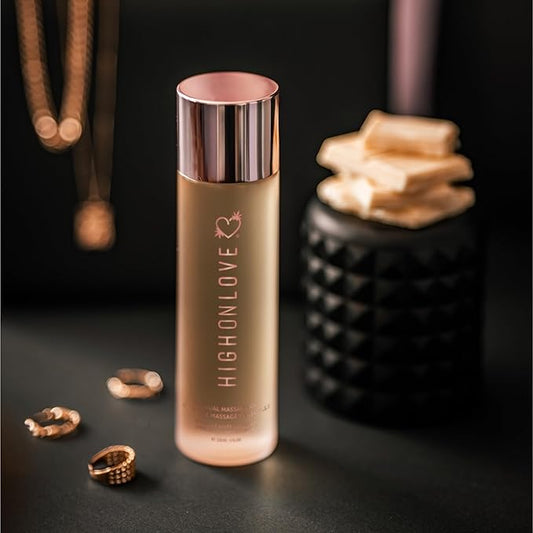 HIGHONLOVE Natural Body Oil with Hemp Seed, Grape Seed, and Vitamin E Oil - Moisturizing Body Oil, Non-Greasy, Glowy Finish (120 ml) (Decadent White Chocolate)