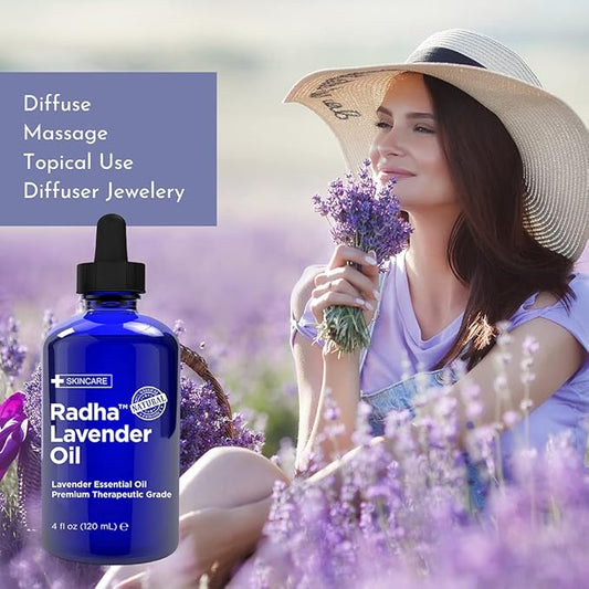Radha Beauty - Lavender Essential Oil 4oz - Premium Therapeutic Grade, Steam Distilled for Aromatherapy, Relaxation, Laundry, Meditation, Massage, Yoga, Relief