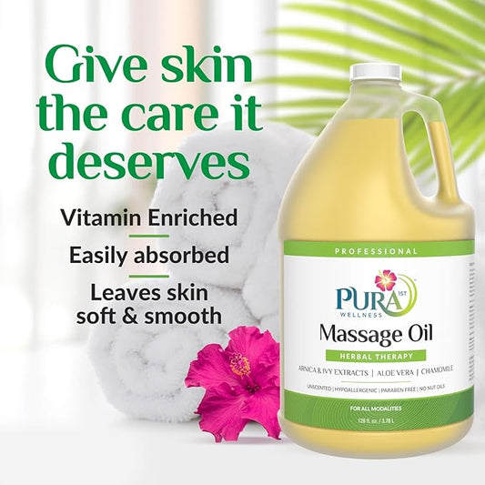 Herbal Massage Oil, Hypoallergenic Formula for Muscle Relief, Professional Deep Tissue Therapy, Massage Oil for Massage Therapy, Unscented Oil for Physical Therapy and Muscle Recovery, 128oz