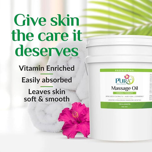 5 Gallon Herbal Massage Oil, Hypoallergenic Formula for Muscle Relief, Professional Deep Tissue, Unscented for Physical Therapy and Muscle Recovery, Hydrating, Skin Restoring