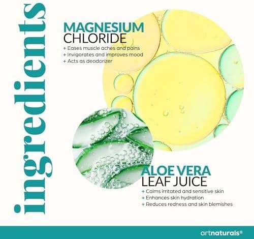 ArtNaturals Magnesium Oil Spray 12 oz + Body Massage Lotion Set 8oz for Feet & Sleep - Extra Strength Cream Ultra-Pure, Relief & Relaxation, Muscle Health Leg & Joint Care Topical Non Itch