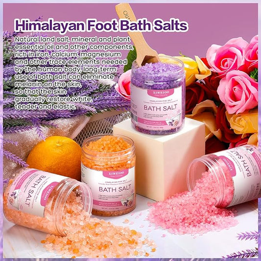 4 Pack Kit Bath Salts for Soaking Himalayan Pink Salt Lavender Orange Rose Pink Scent Epsom Salt Bubble Bath for Women Christmas Gift with Dead Sea Salt Moisturizing Skin