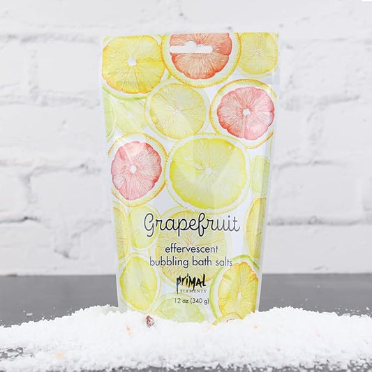 Primal Elements Detoxifying Sea Salt Soak, Bubbling Aromatherapy Salts, Grapefruit, 12 oz Resealable Bag