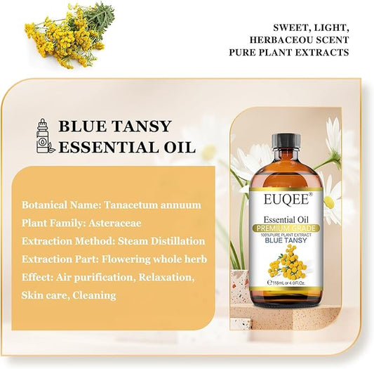 Blue Tansy Essential Oil 118mL/4oz Pure Blue Tansy Oil Premium Essential Oil for Diffuser, Soap Making, Skin Care with Glass Dropper
